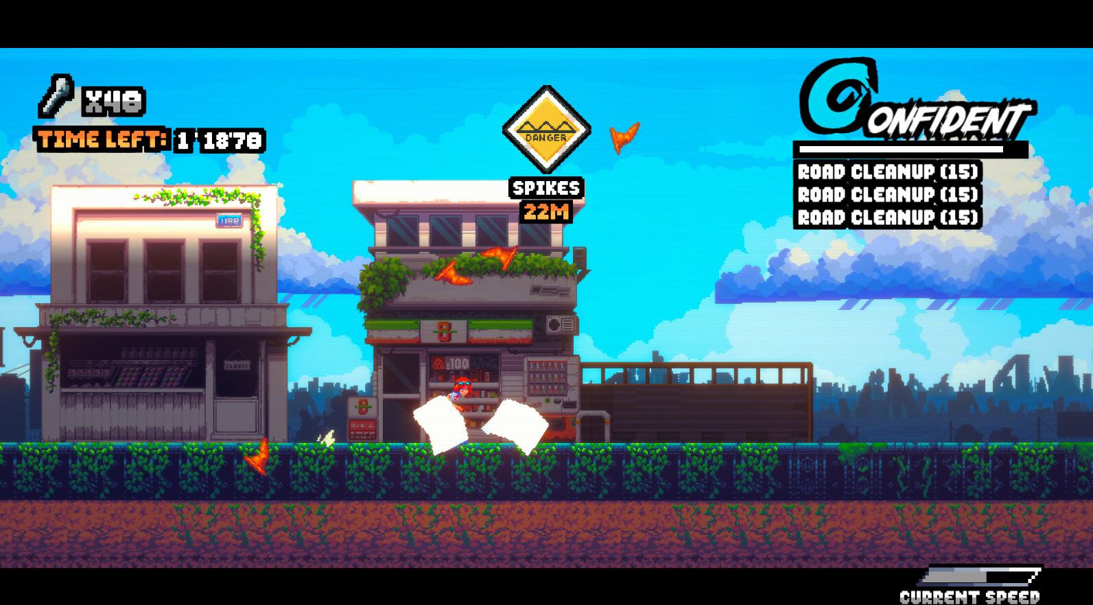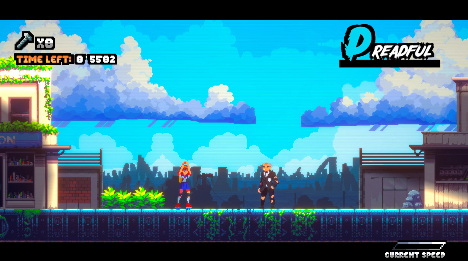 Azure 88 is a side-scrolling platformer that emphasizes momentum and high-speed movement. As the prototype title, Reach for the Sky, captures the goal of this game, it is a platformer with a fluid and fast performance that makes you feel like you could reach the sky.